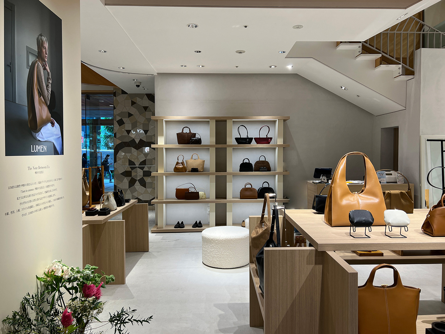 ミニマルながらも、ラグジュアリーなルメンの世界観を表現し、単なる販売スペースではなく、ギャラリーのような雰囲気を演出。